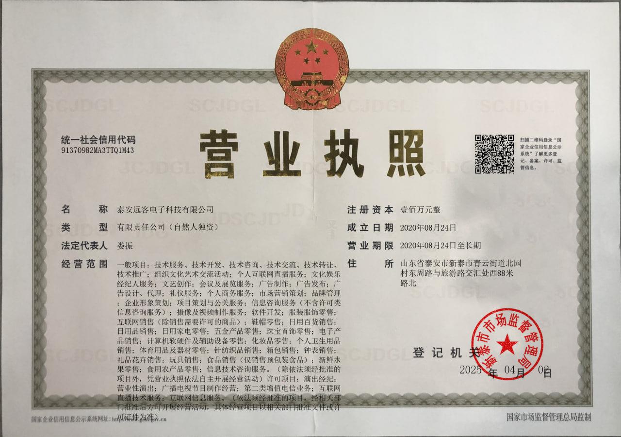 泰安遠客電子科技有限公司是一家從事技術(shù)服務(wù),技術(shù)開發(fā),技術(shù)咨詢等業(yè)務(wù)的公司,成立于2020年08月24日,公司坐落在山東省,詳細地址為:山東省泰安市新泰市青云街道北園村東周路與旅游路交匯處西88米路北;經(jīng)國家企業(yè)信用信息公示系統(tǒng)查詢得知,泰安遠客電子科技有限公司的信用代碼/稅號為91370982MA3TTQ1M43,法人是婁振,注冊資本為100.000000萬,企業(yè)的經(jīng)營范圍為:一般項目:技術(shù)服務(wù)、技術(shù)開發(fā)、技術(shù)咨詢、技術(shù)交流、技術(shù)轉(zhuǎn)讓、技術(shù)推廣;組織文化藝術(shù)交流活動;個人互聯(lián)網(wǎng)直播服務(wù);文化娛樂經(jīng)紀人服務(wù);文藝創(chuàng)作;會議及展覽服務(wù);廣告制作;廣告發(fā)布;廣告設(shè)計、代理;禮儀服務(wù);個人商務(wù)服務(wù);市場營銷策劃;品牌管理;企業(yè)形象策劃;項目策劃與公關(guān)服務(wù);信息咨詢服務(wù)(不含許可類信息咨詢服務(wù));攝像及視頻制作服務(wù);軟件開發(fā);服裝服飾零售;互聯(lián)網(wǎng)銷售(除銷售需要許可的商品);鞋帽零售;日用百貨銷售;日用品銷售;日用家電零售;五金產(chǎn)品零售;珠寶首飾零售;電子產(chǎn)品銷售;計算機軟硬件及輔助設(shè)備零售;化妝品零售;個人衛(wèi)生用品銷售;體育用品及器材零售;針紡織品銷售;箱包銷售;鐘表銷售;禮品花卉銷售;玩具銷售;食品銷售(僅銷售預包裝食品);新鮮水果零售;食用農(nóng)產(chǎn)品零售;信息技術(shù)咨詢服務(wù)。(除依法須經(jīng)批準的項目外,憑營業(yè)執(zhí)照依法自主開展經(jīng)營活動)許可項目:演出經(jīng)紀;營業(yè)性演出;廣播電視節(jié)目制作經(jīng)營;第二類增值電信業(yè)務(wù);互聯(lián)網(wǎng)直播技術(shù)服務(wù);互聯(lián)網(wǎng)信息服務(wù)。(依法須經(jīng)批準的項目,經(jīng)相關(guān)部門批準后方可開展經(jīng)營活動,具體經(jīng)營項目以相關(guān)部門批準文件或許可證件為準)