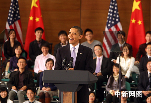 美國(guó)總統(tǒng)奧巴馬在上海與中國(guó)青年對(duì)話