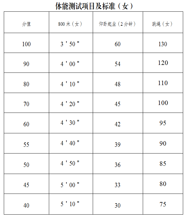 (2)體能測(cè)試項(xiàng)目及標(biāo)準(zhǔn)(附件3)。