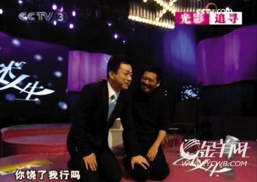 更雷人的一幕出現(xiàn)了———發(fā)哥突然拉著朱軍,面對現(xiàn)場觀眾跪了下來,說這是為了讓他感受《孔子》是如何復原2000年前的真實生活的。朱軍一臉惶恐,沒想到發(fā)哥又繼續(xù)拉著他,以額貼地,實實在在地給觀眾叩了一個頭,說要感謝觀眾。緊接著,發(fā)哥向著朱軍跪了下來,給他叩了一個頭。正當朱軍驚恐莫名,發(fā)哥學著朱軍慣用的深情語調(diào),極其“誠懇”地表示,因為他喜歡看《藝術(shù)人生》,朱軍跟他父親的故事令他非常感動。這下,朱軍不得不也以磕頭“還禮”。