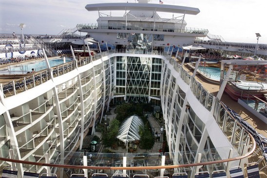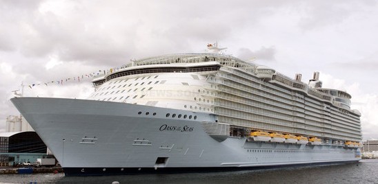 世界最大游輪“海洋綠洲”號本月初首航。這艘巨輪能夠容納超過8000人,除客房、餐飲和購物場所及各類運(yùn)動場館外,還配備綠地公園、兒童游樂場、賭場和攀巖壁等,設(shè)施之完備堪比一座陸上城市。