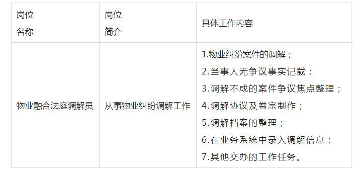 本次計劃招聘10名專職物業(yè)糾紛調(diào)解員,具體為: