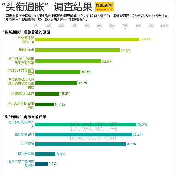 80.9%的人認(rèn)為“頭銜通脹”源于當(dāng)前社會(huì)重權(quán)